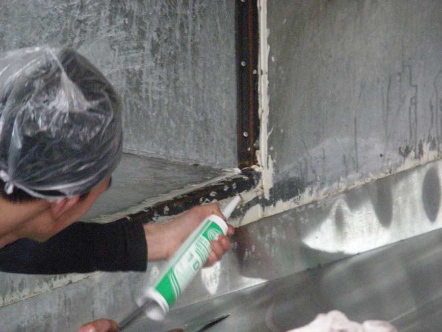 清洗干凈的燃?xì)庠罹摺⒌孛?nbsp; 打密封膠